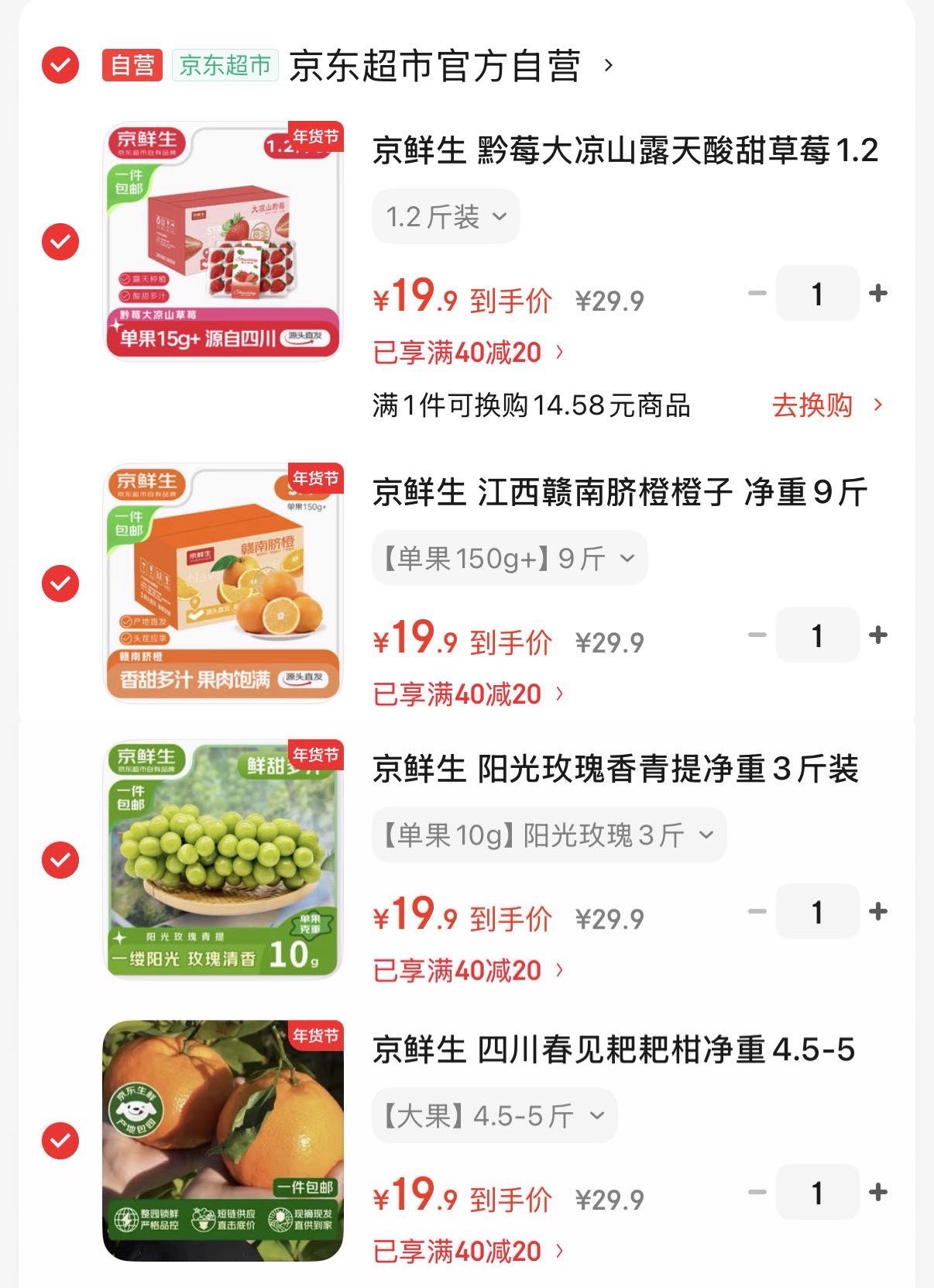 自营水果任选2件39.9亓