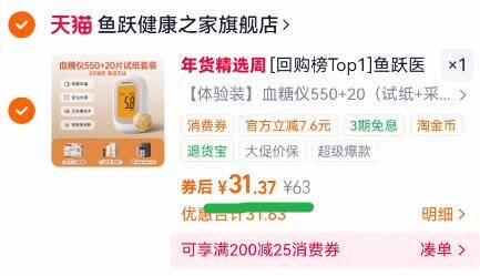 31.3亓速拍最后1选项 赠收纳盒 采血笔 电池 鱼跃 血糖仪 20试纸 20采样针好单发报员2026年01月26日 09:330举报 31.3亓速拍最后1选项赠收纳盒 采血笔 电池【鱼跃】血糖仪 20试纸 20采样针https://m.tb.cn/h.7p36Dzh---鱼跃抓紧!线下都得七八十可以给自己测 做到有备无患复制文案