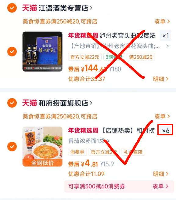 3、凑单商品加购1件 一起付款然后退掉凑单