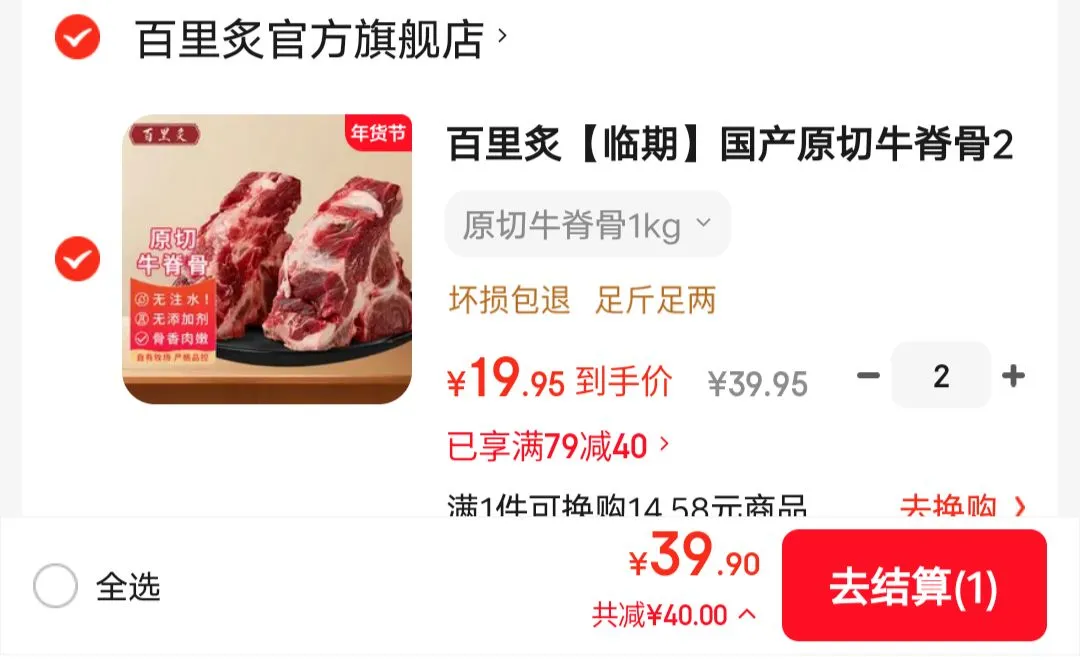 9.97元/斤!限时好价! 自营 百里炙 国产原切牛脊骨2斤 拍2件实付39.9元 共4斤!好单发报员2026年01月26日 11:310举报 9.97元/斤!限时好价!【自营】百里炙 国产原切牛脊骨2斤https://u.jd.com/J1uJiZf 拍2件实付39.9元 共4斤!复制文案