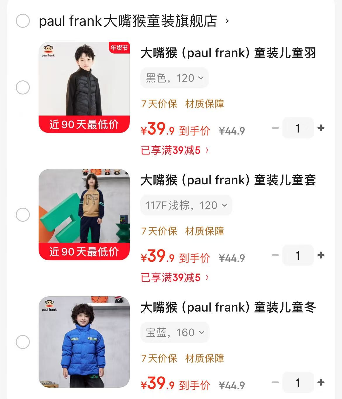 大嘴猴 (paul frank)童装儿童羽绒服【39.9】