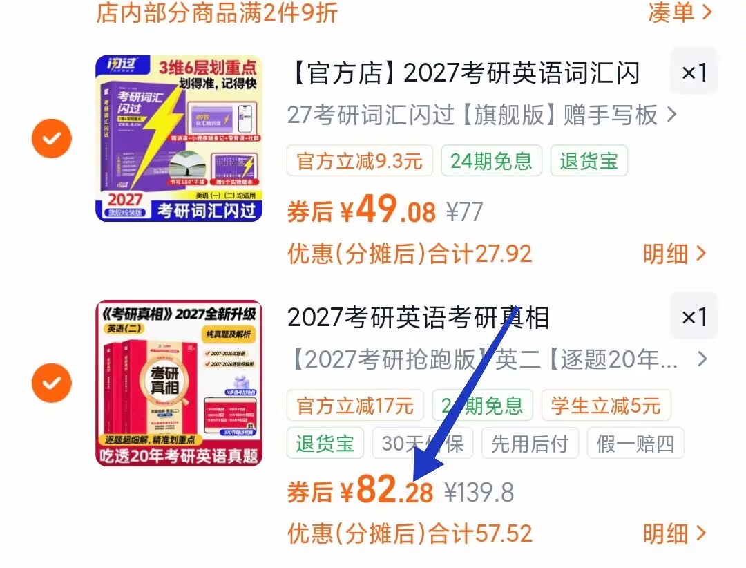 ②凑单加购物车一件 复制本消息 打开桃宝查看 一起下单之后单独退掉凑单好单发报员2026年01月26日 11:490举报 ②凑单加购物车一件https://m.tb.cn/h.7pKO3cI复制本消息 打开桃宝查看一起下单之后单独退掉凑单27考研真相套装 82亓到手复制文案