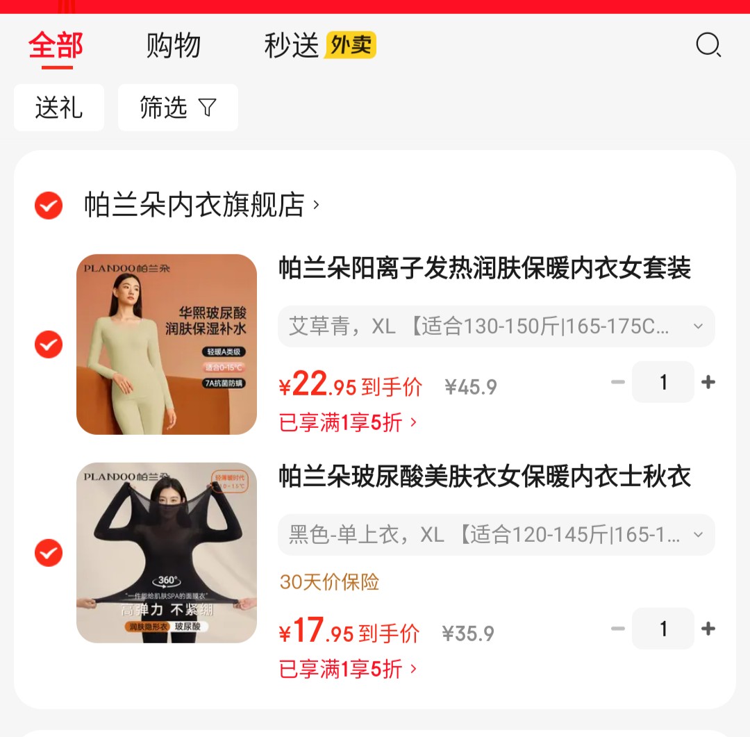 帕兰朵 玻尿酸美肤衣女保暖内衣【17.9】套装选项【22.9】