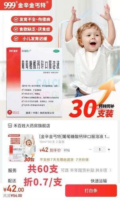 澳诺 葡萄糖酸钙锌口服溶液10ml*30支*2盒装