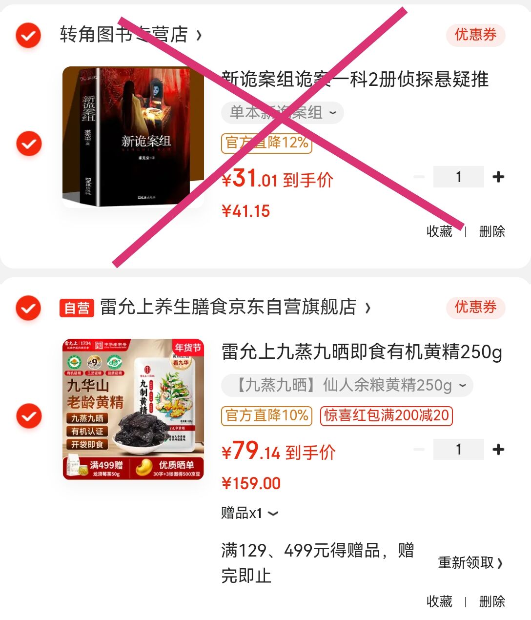 凑单任选1件付后退