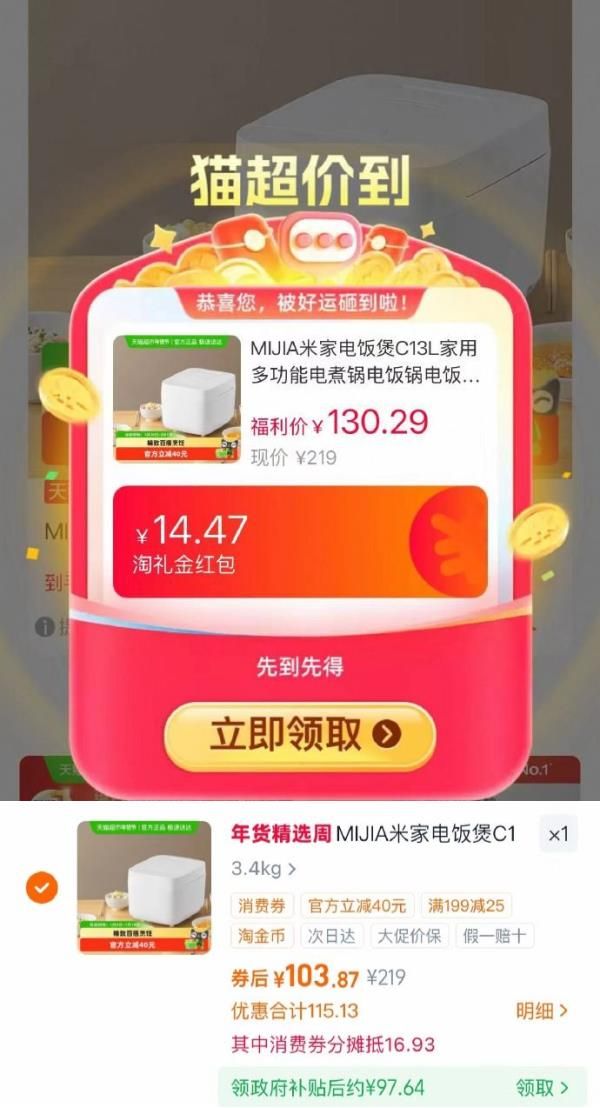 MIJIA米家电饭煲C13L家用3升,领礼金