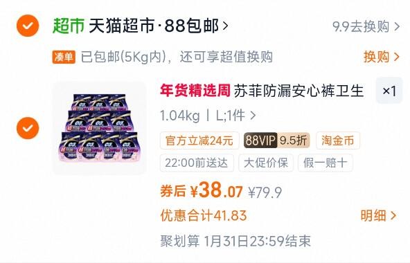 苏菲 卫生巾超熟睡安心裤安睡裤L码