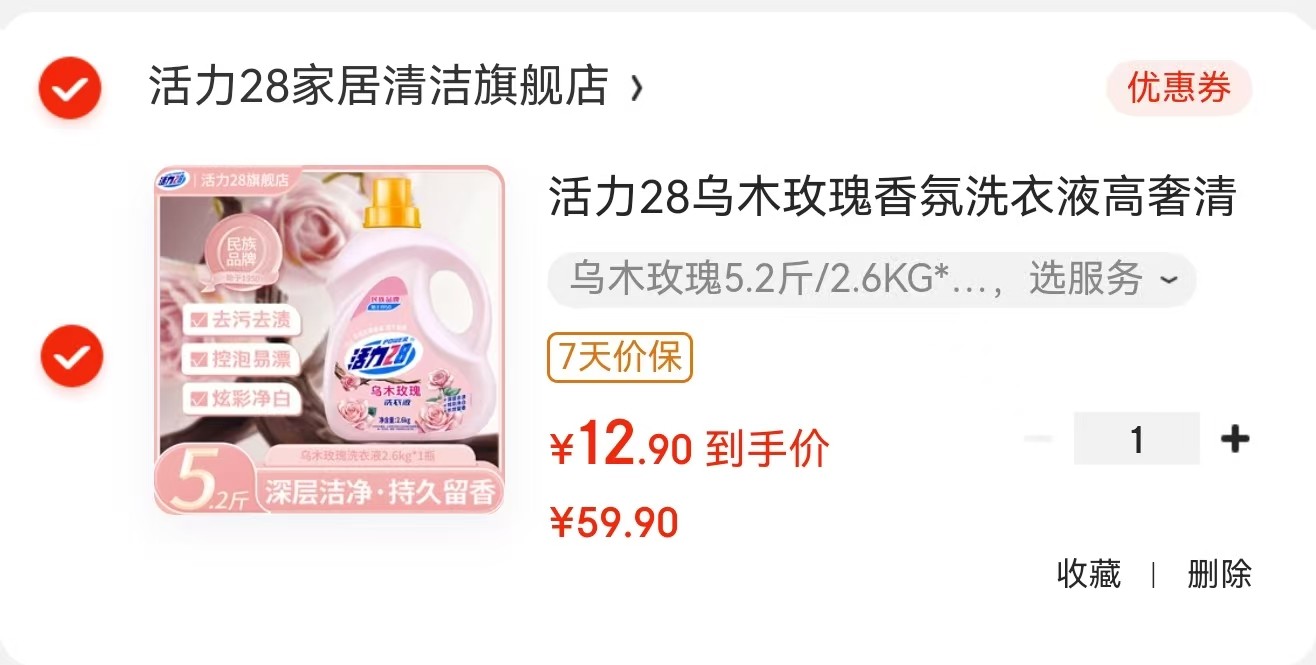 活力28 乌木玫瑰香氛洗衣液 5.2斤【12.9】