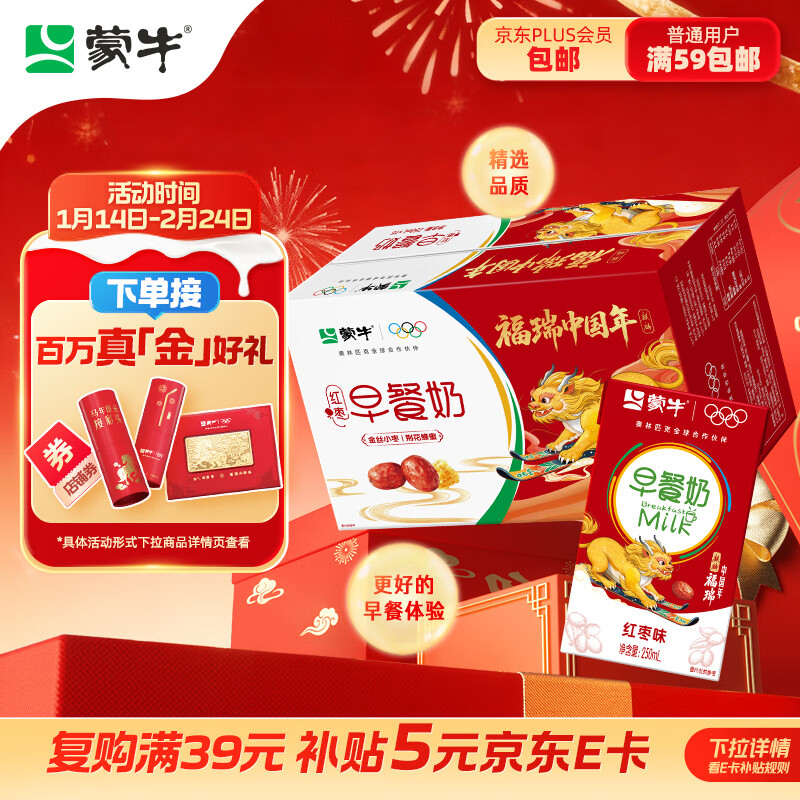 【自营】蒙牛红枣味早餐奶250ml*16盒