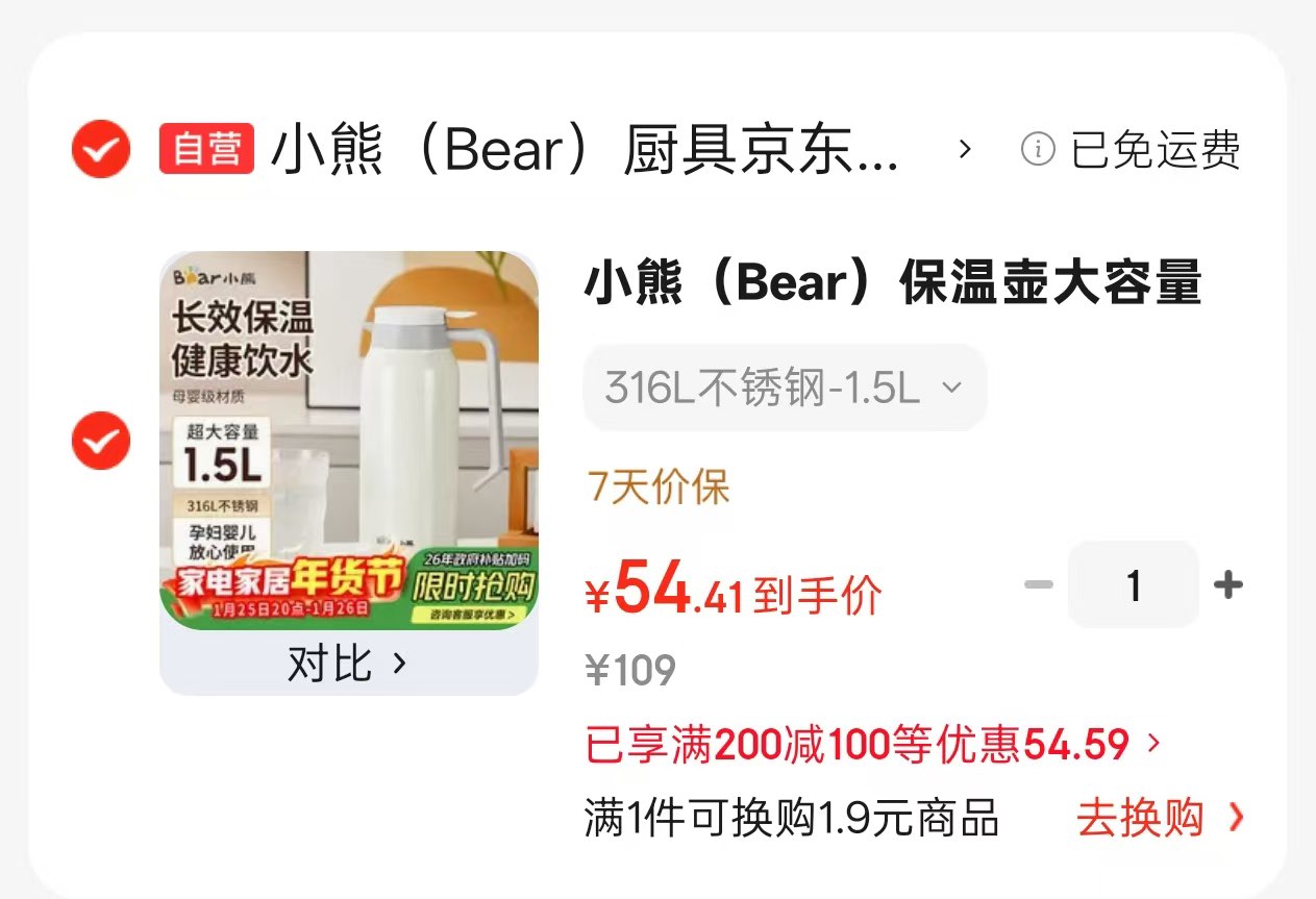 领厨具200-100卷 54亓小熊保温壶1.5L 凑好单发报员2026年01月26日 16:000举报 领厨具200-100卷 https://u.jd.com/JGsRryL 54亓小熊保温壶1.5Lhttps://u.jd.com/J1skAOk 凑https://u.jd.com/JDsPvBy 复制文案