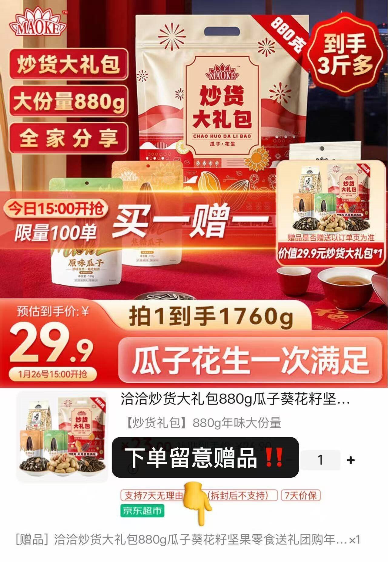 瓜子礼包买1赠1 自营 洽洽 瓜子大礼包880g 24.2亓 U,Plus无限包邮 好单发报员 2026年01月26日 16:08 0 举报 ——瓜子礼包买1赠1——【自营】洽洽 瓜子大礼包880ghttps://u.jd.com/JgsBFvZ24.2亓 U,Plus无限包邮*买1赠1 折12.1/袋 年货必备 复制文案