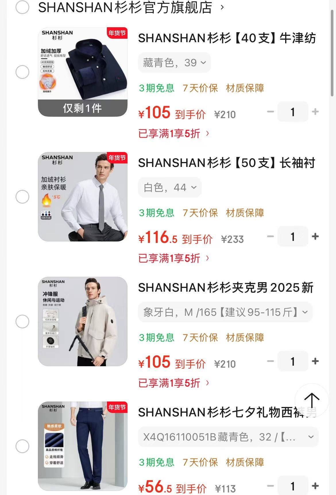 杉杉 50支长袖衬衫加绒加厚【116.5】