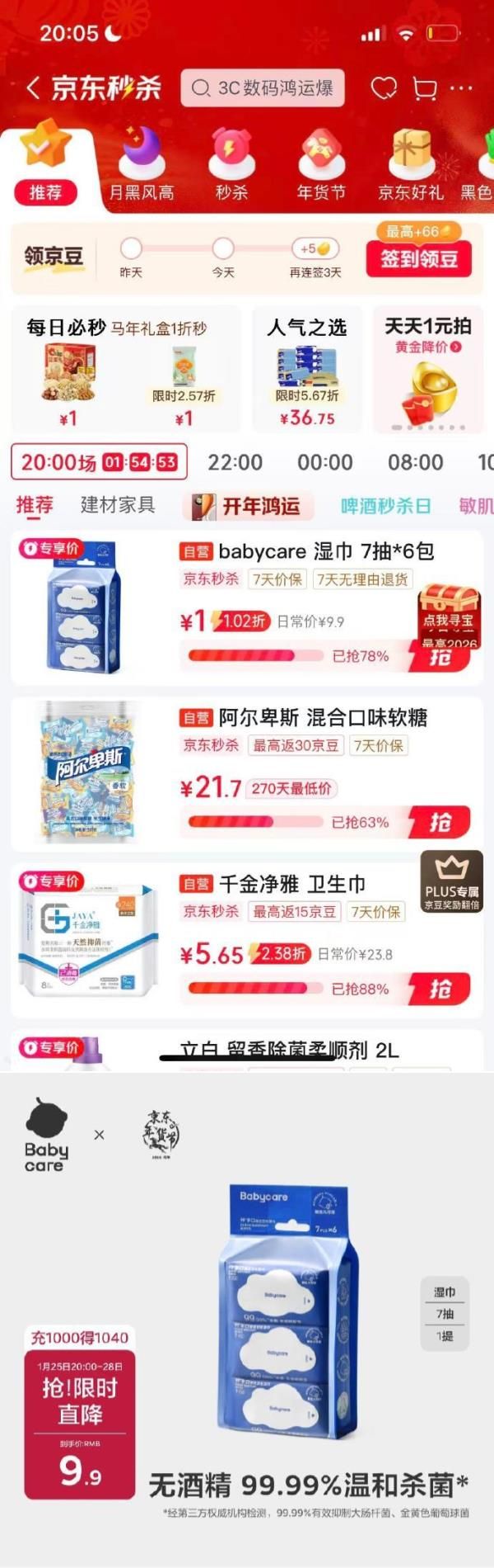 babycare杀菌消毒清洁卫生湿巾7抽*6包,1