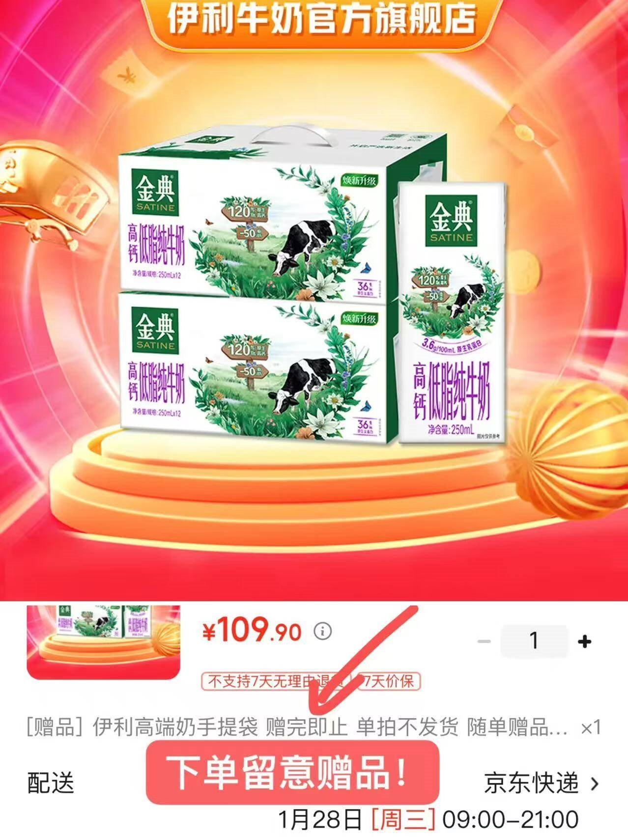 快金典低脂豪車 金典 高钙低脂纯牛奶12盒*2箱 仅.需54.9亓,才折27.4亓/箱好单发报员2026年01月26日 20:350举报 ——快金典低脂豪車——金典 高钙低脂纯牛奶12盒*2箱https://u.jd.com/JGQGmQ3仅.需54.9亓,才折27.4亓/箱*赠礼袋*1个 京仓发 手漫又无*实发11月仅武汉仓-1月生产复制文案