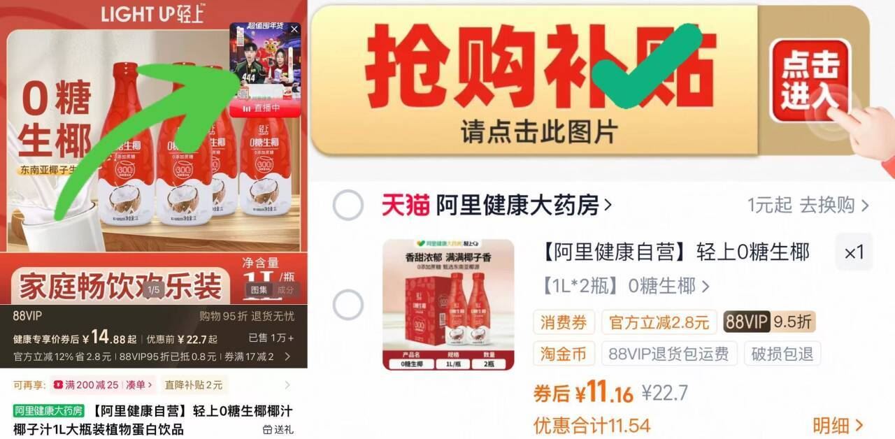 速11亓 5.5亓/瓶 1,右上角进直博间加1件 2,下拉详情页加1件好单发报员2026年01月26日 20:500举报 速11亓 5.5亓/瓶1,右上角进直博间加1件2,下拉详情页加1件-轻上.0糖椰汁1L*2大瓶https://m.tb.cn/h.7ppHo77复制文案