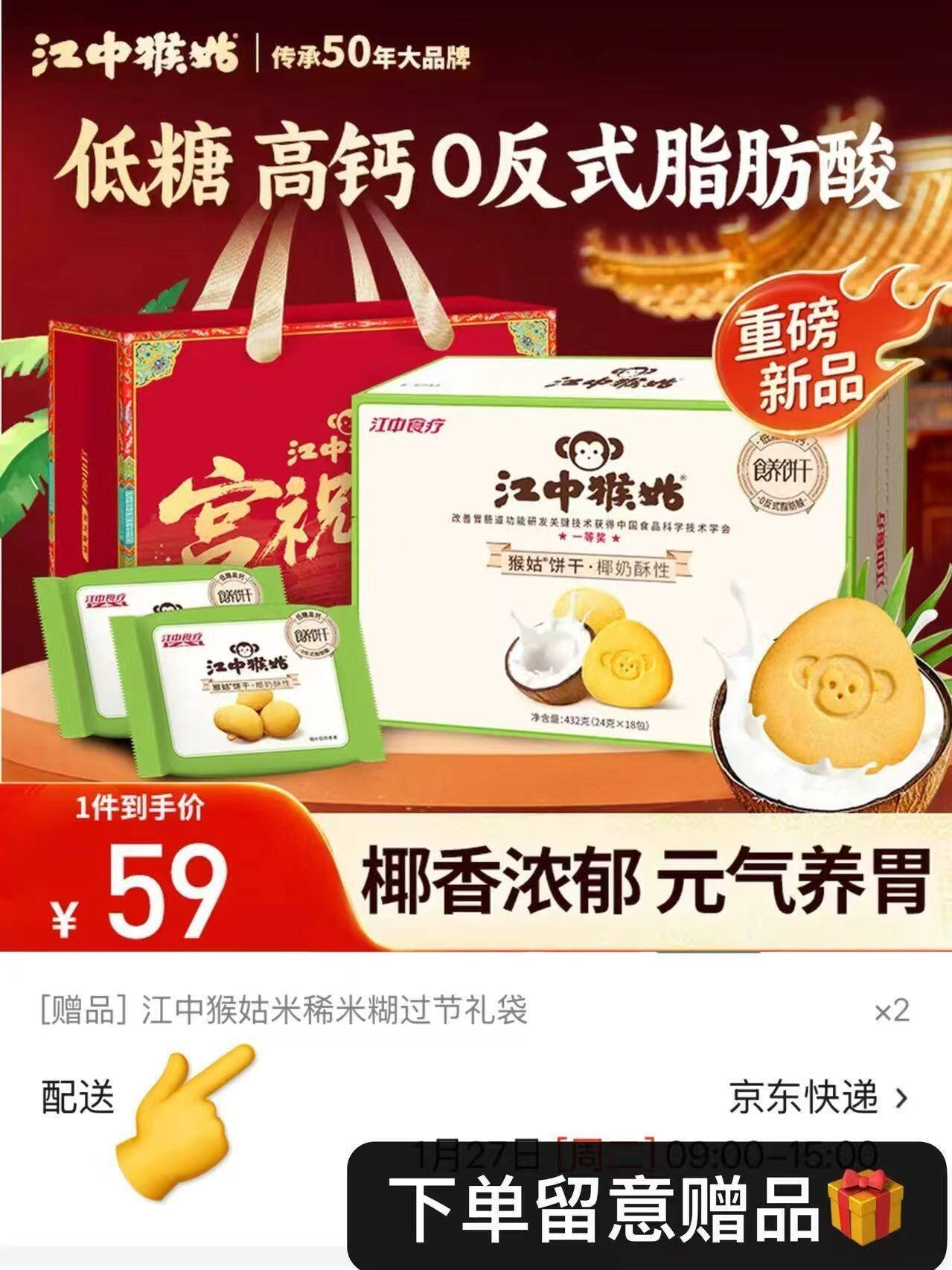 江中猴姑 椰奶猴头菇饼干432g