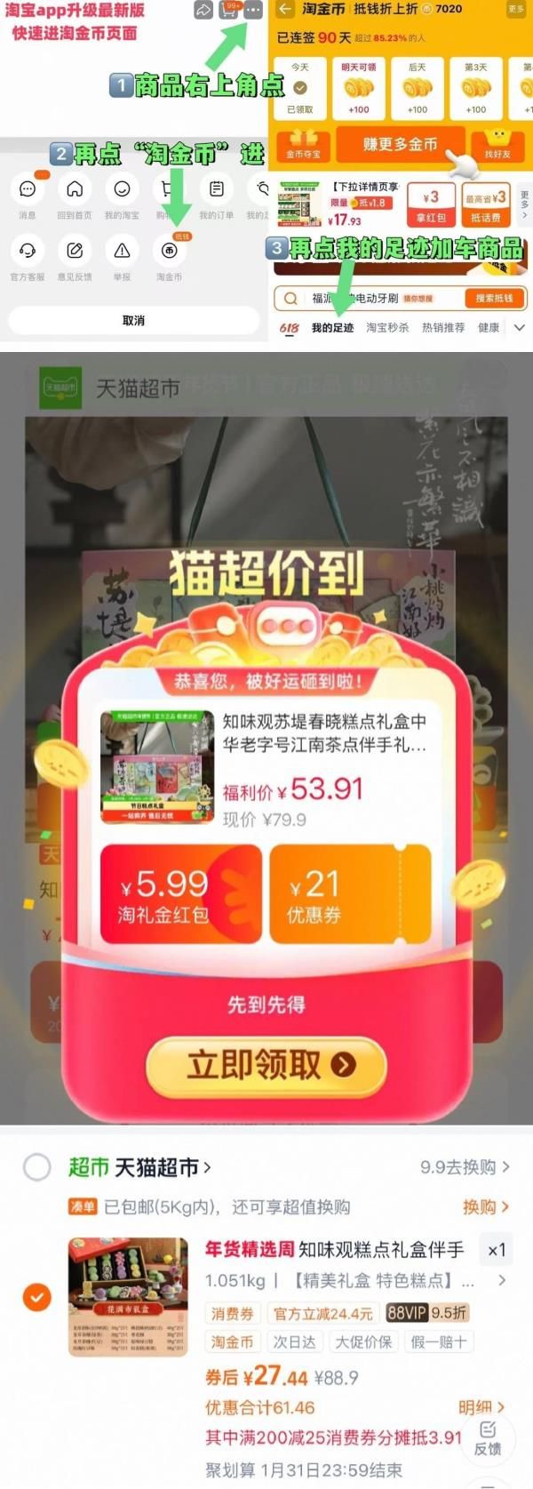 淘金币页面我的足迹加购(抵1.5)
