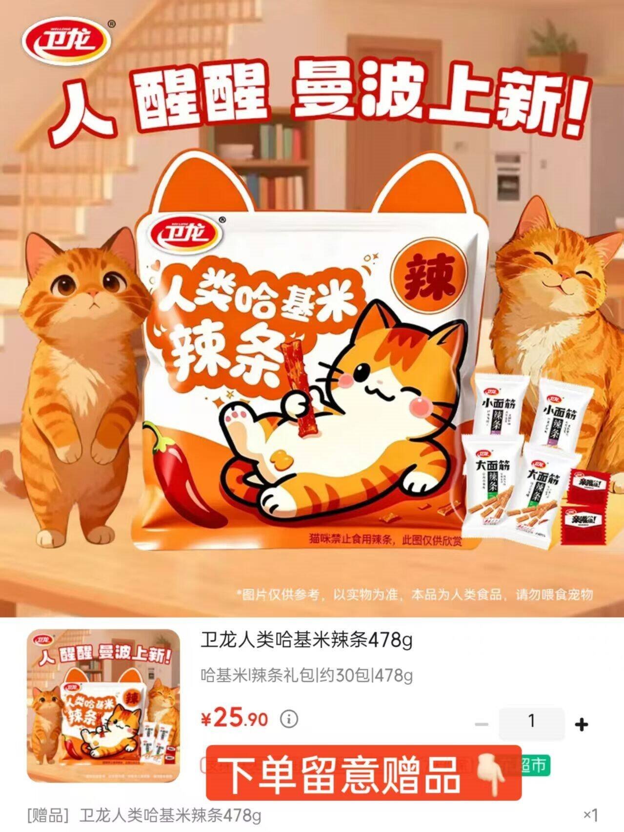 快卫龙买1送1 自营 卫龙 哈基米辣条478g 25.9亓 云费,Plus无限包邮好单发报员2026年01月26日 22:340举报 ——快卫龙买1送1——【自营】卫龙 哈基米辣条478ghttps://u.jd.com/JaQpC5F25.9亓 云费,Plus无限包邮*赠同款辣条478g 才12.9/件*鲜辣Q弹 解馋过瘾 这忦块冲复制文案
