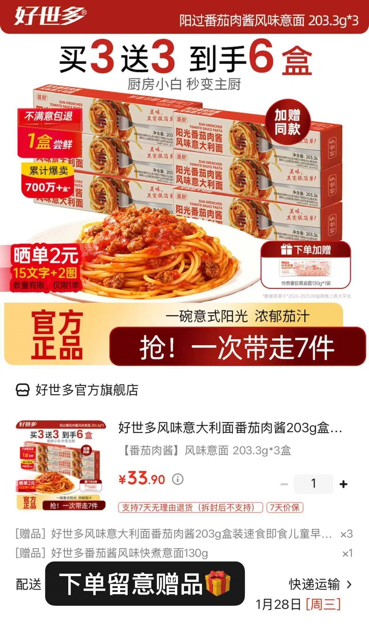 *赠同款3盒 快煮意面130g