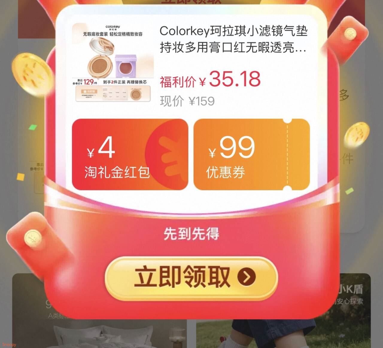 Colorkey珂拉琪小滤镜遮瑕气垫 送替换装,弹礼金领取 详情页进金币频道加购,拍下 28.88 遮瑕气垫+腮红/粉底液的选项到手 38.66好单发报员2026年02月03日 11:160举报 Colorkey珂拉琪小滤镜遮瑕气垫 送替换装,弹礼金领取https://m.tb.cn/h.7sS8T31 详情页进金币频道加购,拍下【28.88】遮瑕气垫+腮红/粉底液的选项到手【38.66】复制文案