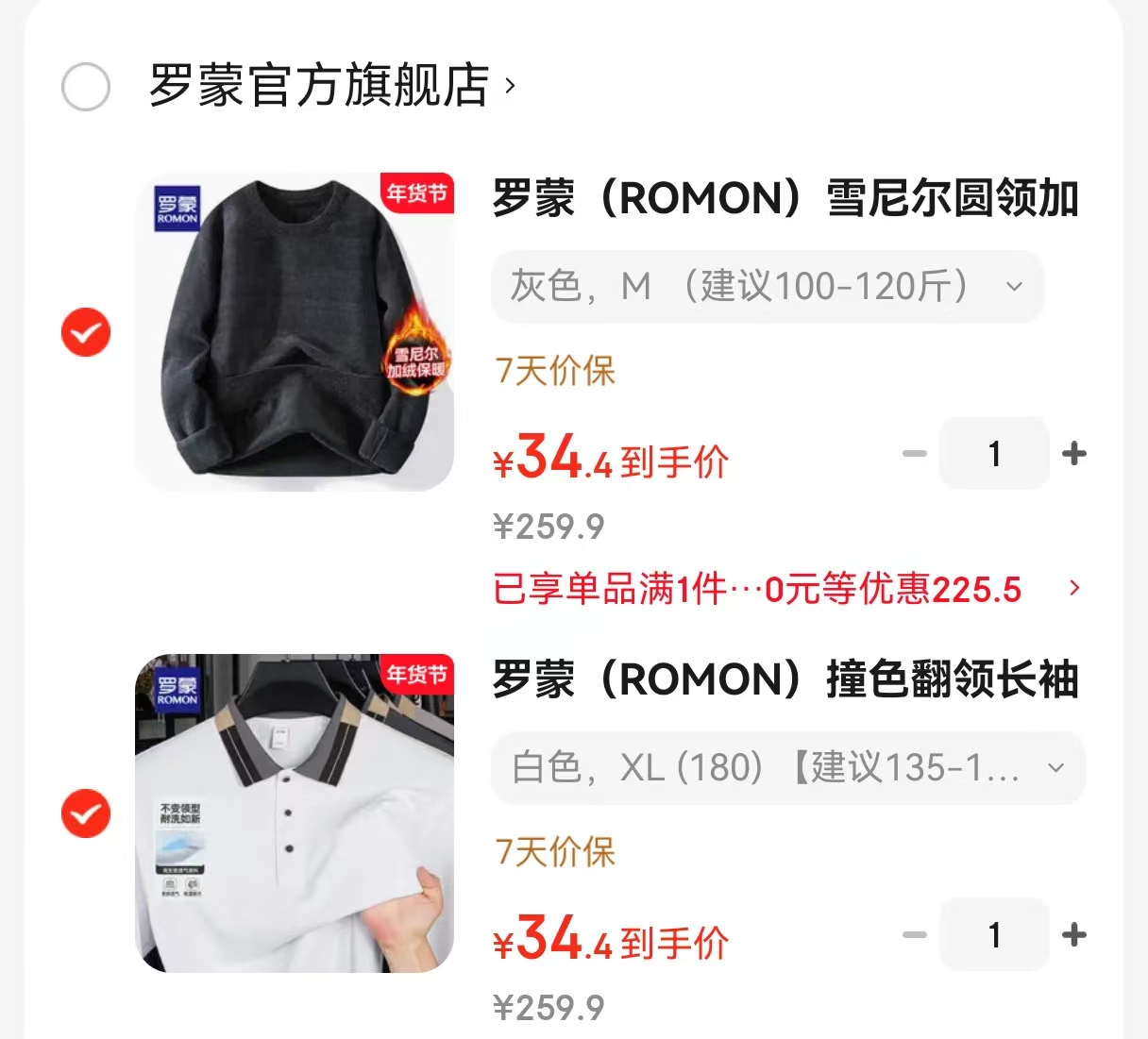 罗蒙(ROMON)雪尼尔圆领加绒针织衫/撞色翻领长袖POLO衫/灯芯绒休闲裤/菠萝格加绒长袖,任选2件【68.8】