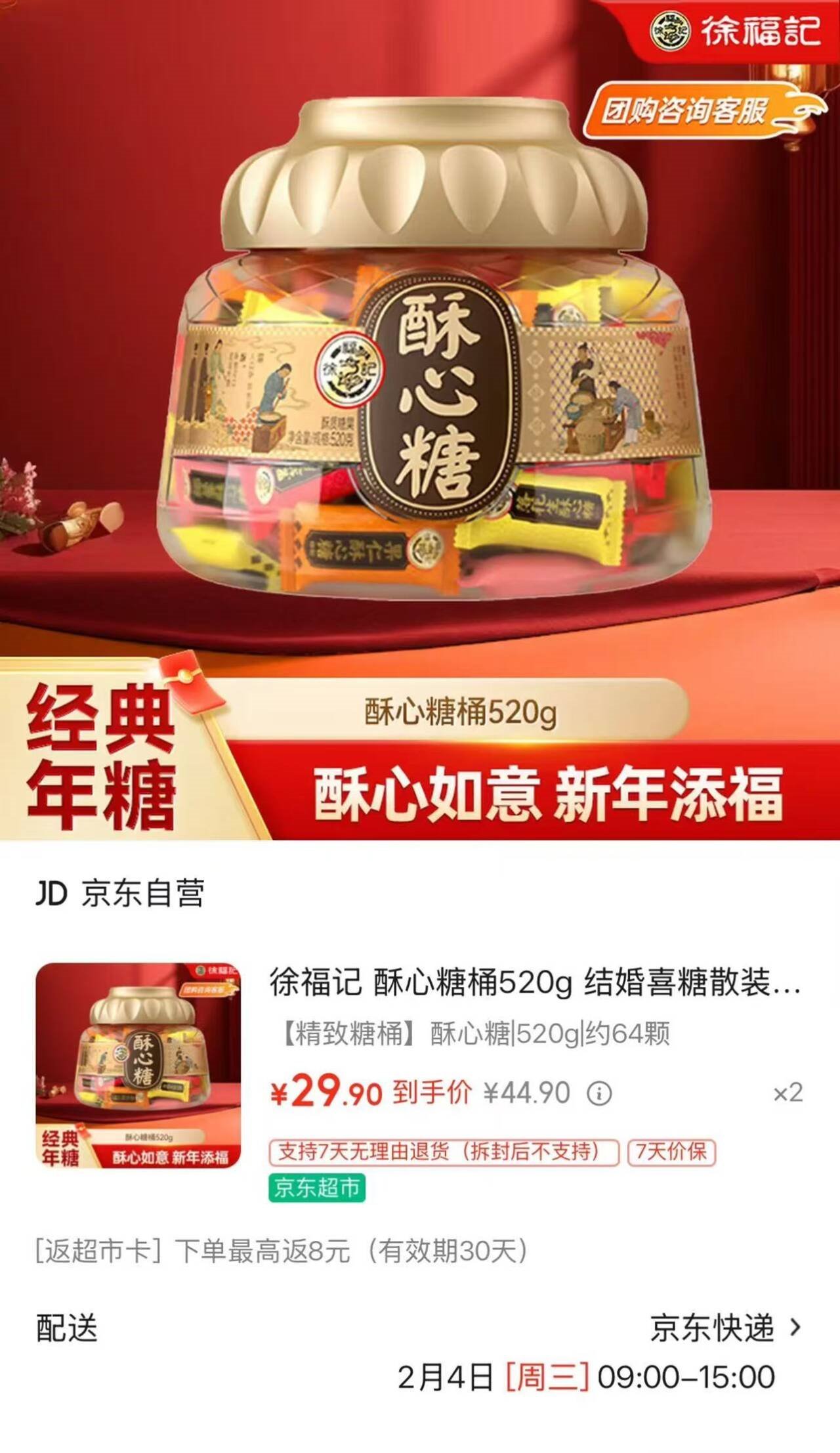 糖桶lou忦快块 自营 徐福记 酥心糖桶520g 买2件59.8亓,反8亓超.市卡好单发报员2026年02月03日 18:370举报 ——糖桶lou忦快块——【自营】徐福记 酥心糖桶520ghttps://u.jd.com/JrfmqA6买2件59.8亓,反8亓超.市卡*到手低至51.8亓 才25.9亓/件*线.下要59亓/桶 手漫涨 速渡囤复制文案