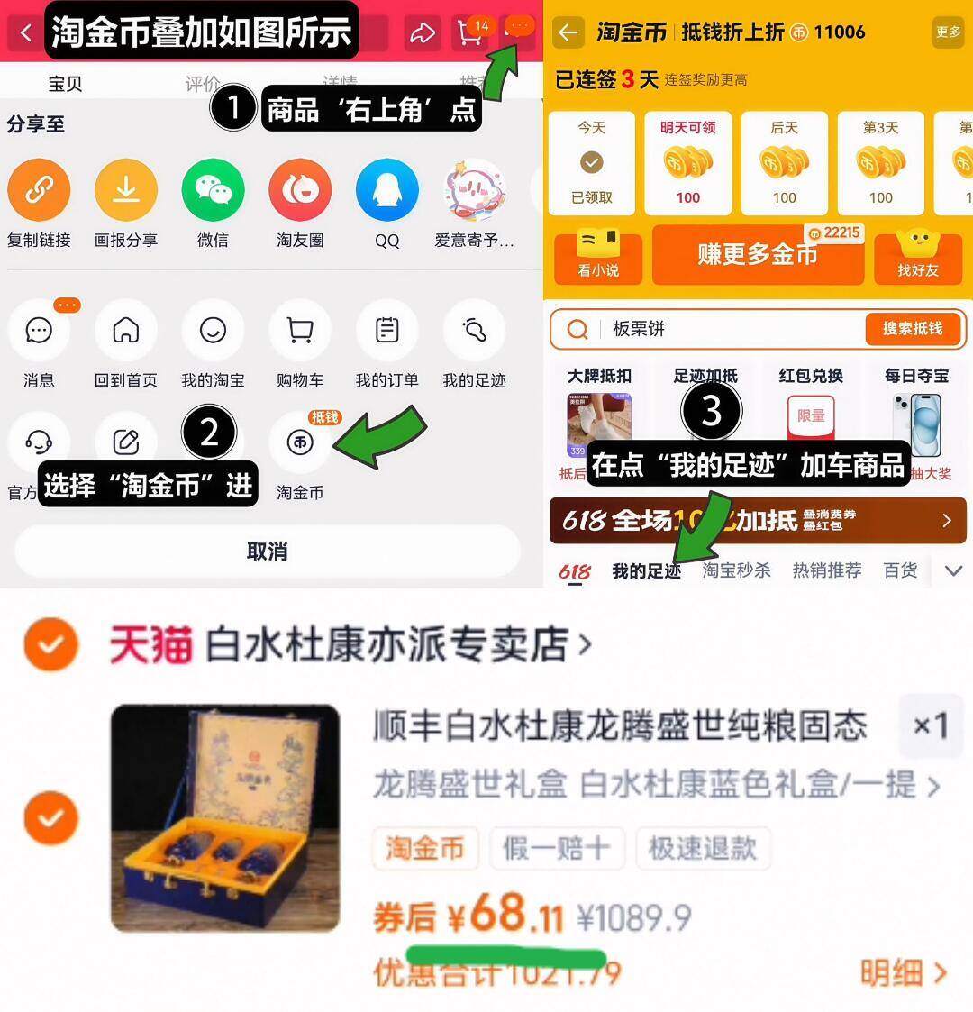 34亓/瓶神圿叠21.8亓金币 拍下68亓!赠白酒100ml 酒杯2个 杜康 龙腾盛世白酒500ml*2瓶好单发报员2026年02月03日 18:540举报 34亓/瓶神圿叠21.8亓金币拍下68亓!赠白酒100ml 酒杯2个【杜康】龙腾盛世白酒500ml*2瓶1、如图点右上角3个点,选淘金币2、选我的足迹-找到商品加车拍下https://m.tb.cn/h.7sKm4xA复制文案