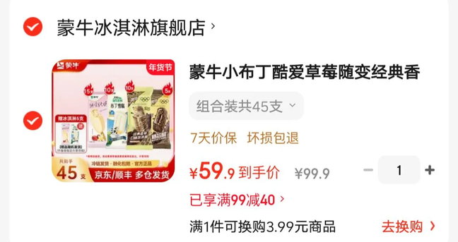 蒙牛 随变经典香草冰淇淋 组合装共45支