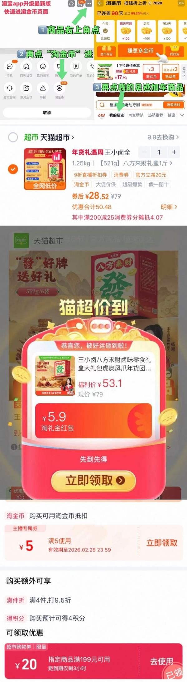 ③淘金币页面我的足迹再加购(抵6.89)