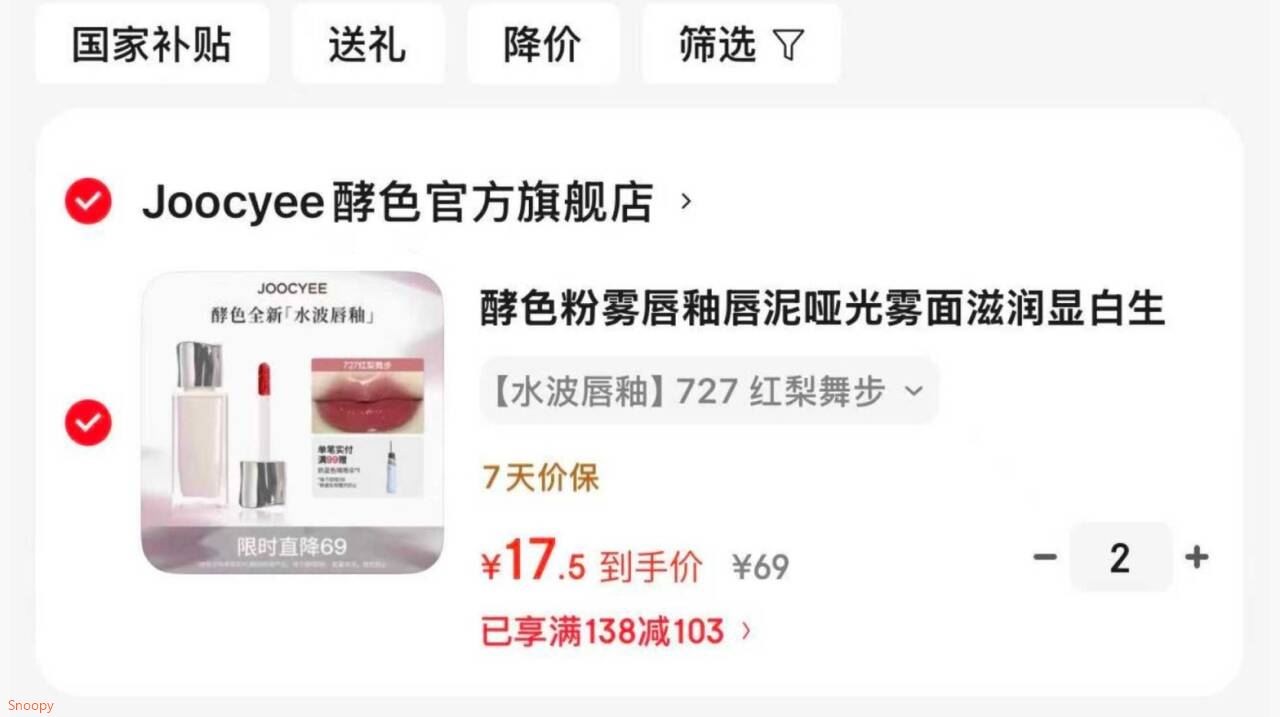 领138-103 酵色 粉雾唇釉唇泥哑光雾面滋润 水波唇釉,任选2件 35好单发报员2026年02月28日 19:060举报 领138-103 https://u.jd.com/lDoDrty 酵色 粉雾唇釉唇泥哑光雾面滋润 水波唇釉,任选2件【35】https://u.jd.com/lgouDBS 复制文案