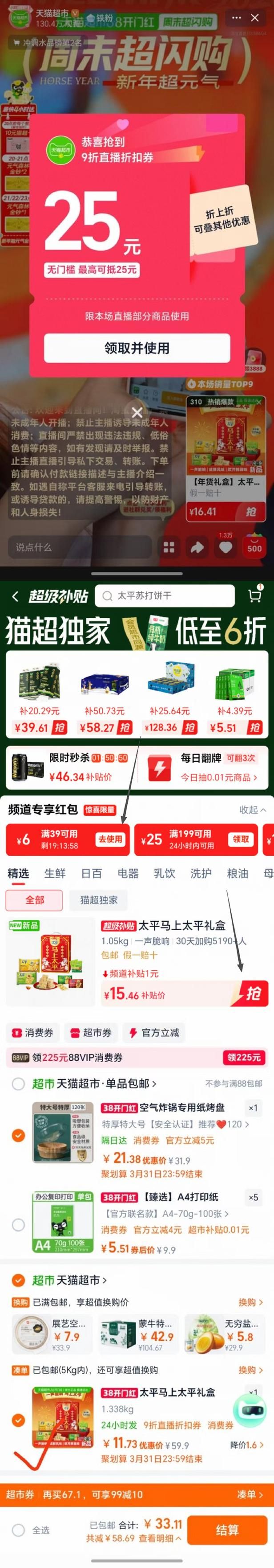 到超补加购,领39-6红包,回购物车-1