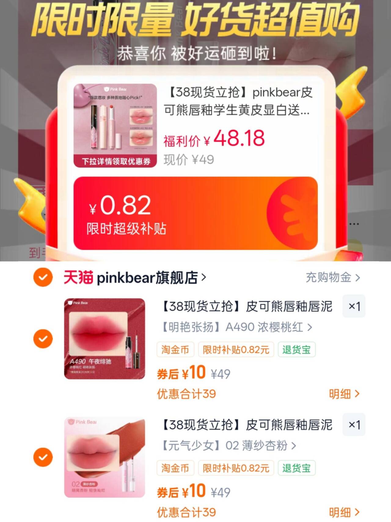 10/支bug!! 皮可熊唇釉 拍2元20 这调色太懂女生了 平价唇釉首选 限时礼金 好单发报员 2026年02月28日 19:14 0 举报 10/支bug!! 皮可熊唇釉拍2元20 这调色太懂女生了平价唇釉首选 限时礼金https://m.tb.cn/h.i0OZxKD 复制文案