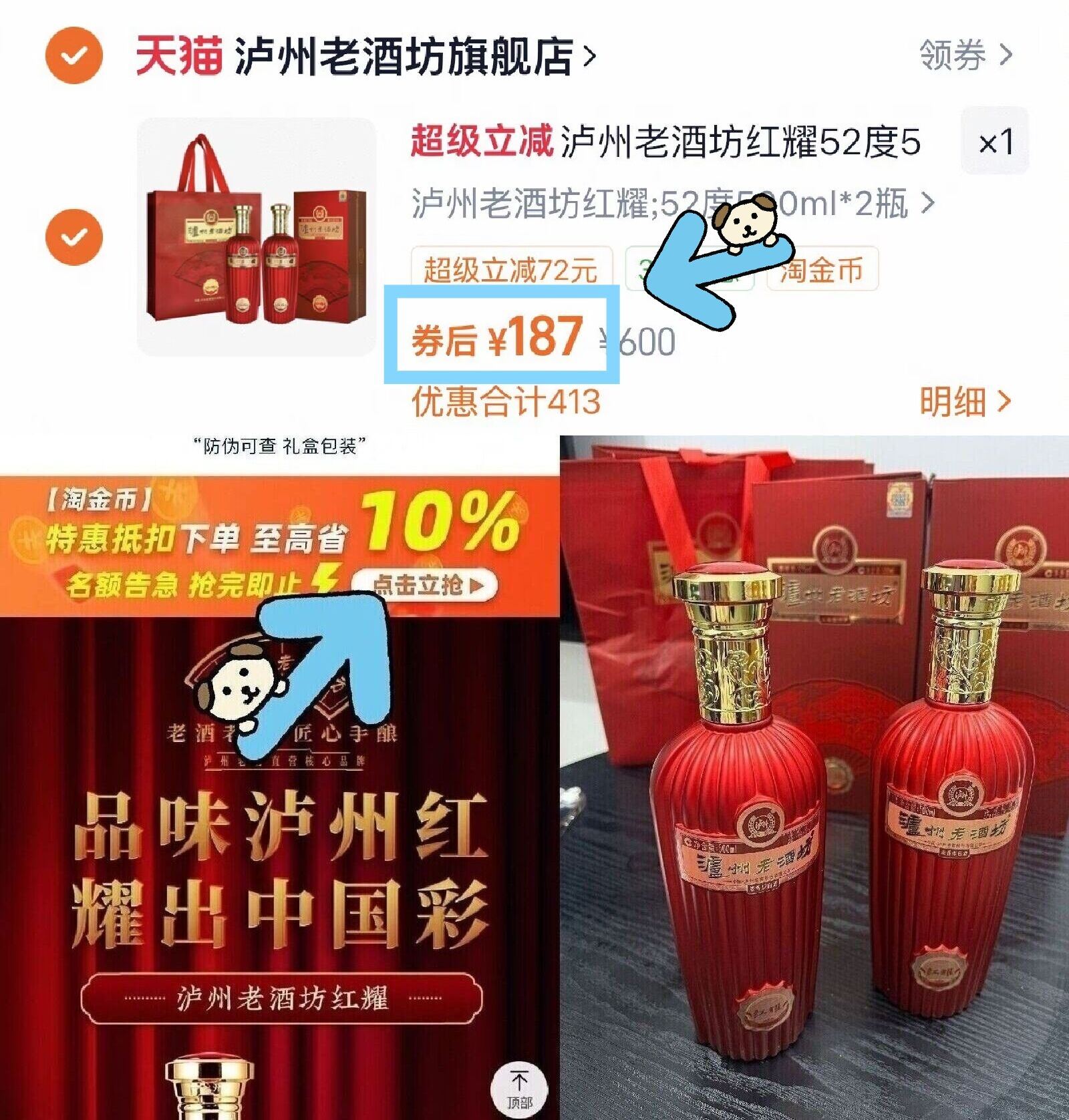 500ml*2瓶礼盒拍下187元神价