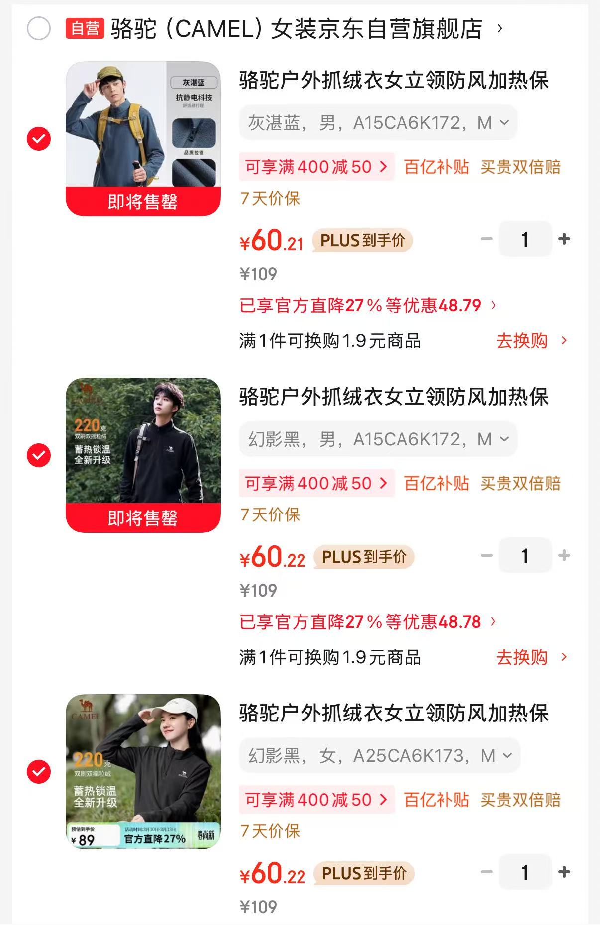 【骆驼】情侣户外抓绒衣