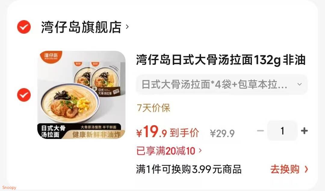 湾仔岛 拉面132g 日式大骨汤拉面*4袋 包草本拉面*4袋【19.9】
