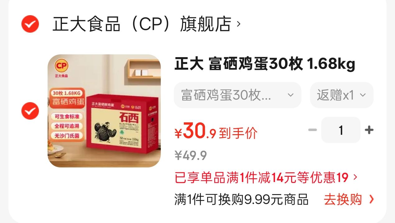 领绻 正大 富硒 鸡蛋30枚1.68kg 返卡3亓仅27.9亓 仅0.9/个