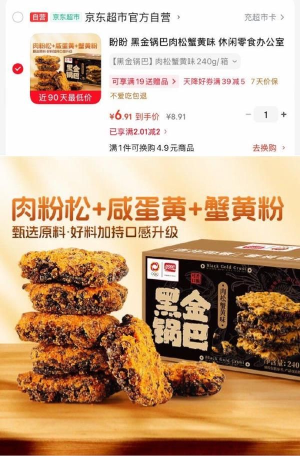 盼盼 黑金锅巴肉松蟹黄味 240g/盒