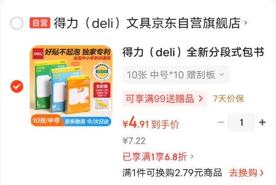 得力 全新分段式中号书皮 10张