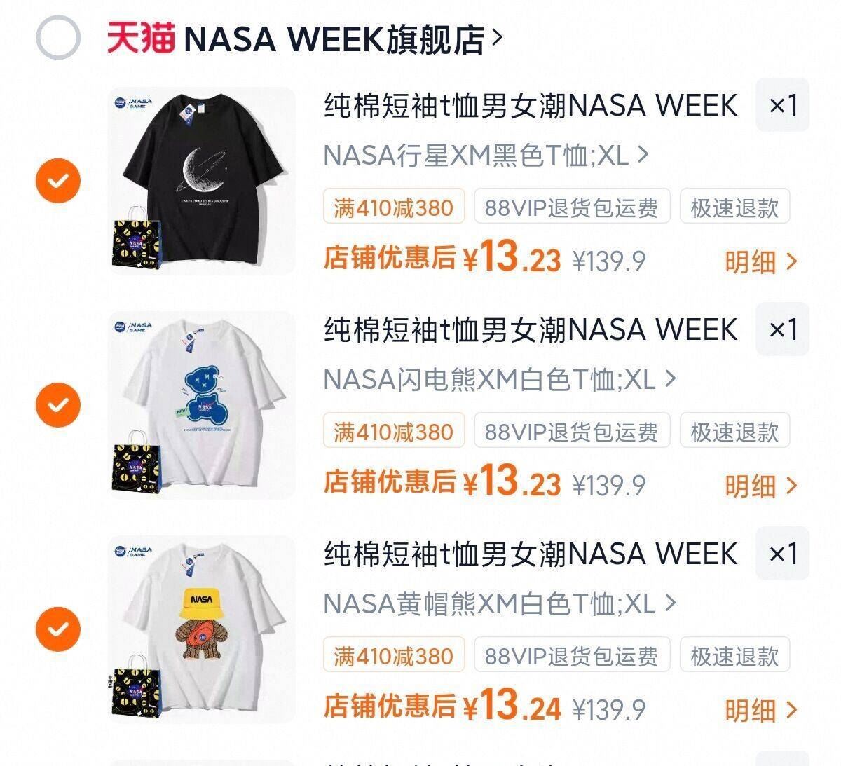 自穿好价,NASA潮牌短袖