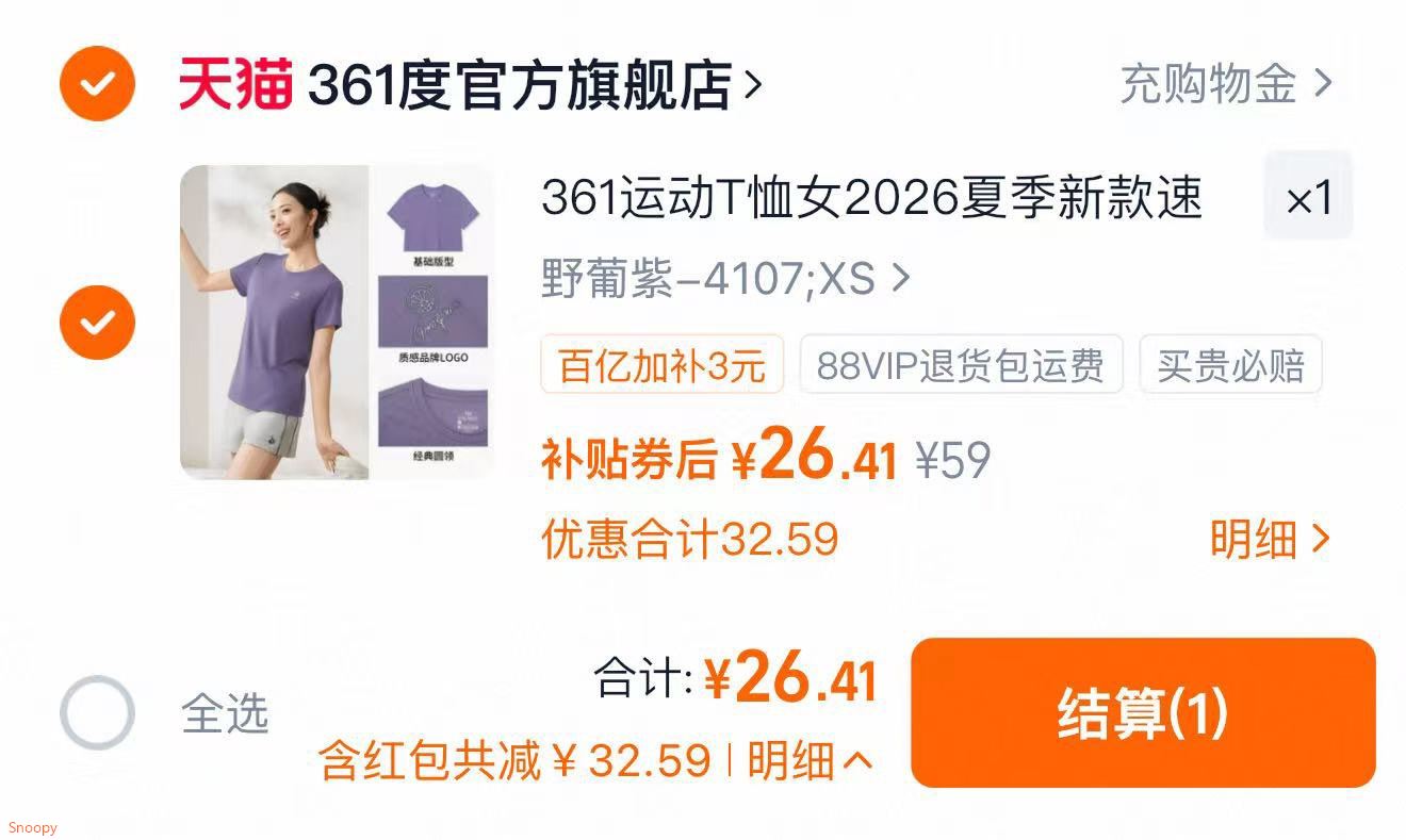 点右上角···再点击桃金币 找到商品加购 叠限量礼金 拍下26.4亓 361度官方旗舰店好单发报员2026年03月12日 10:160举报 点右上角···再点击桃金币找到商品加购 叠限量礼金拍下26.4亓 361度官方旗舰店361度女士速干运动短袖上衣https://m.tb.cn/h.iecLwDo复制文案
