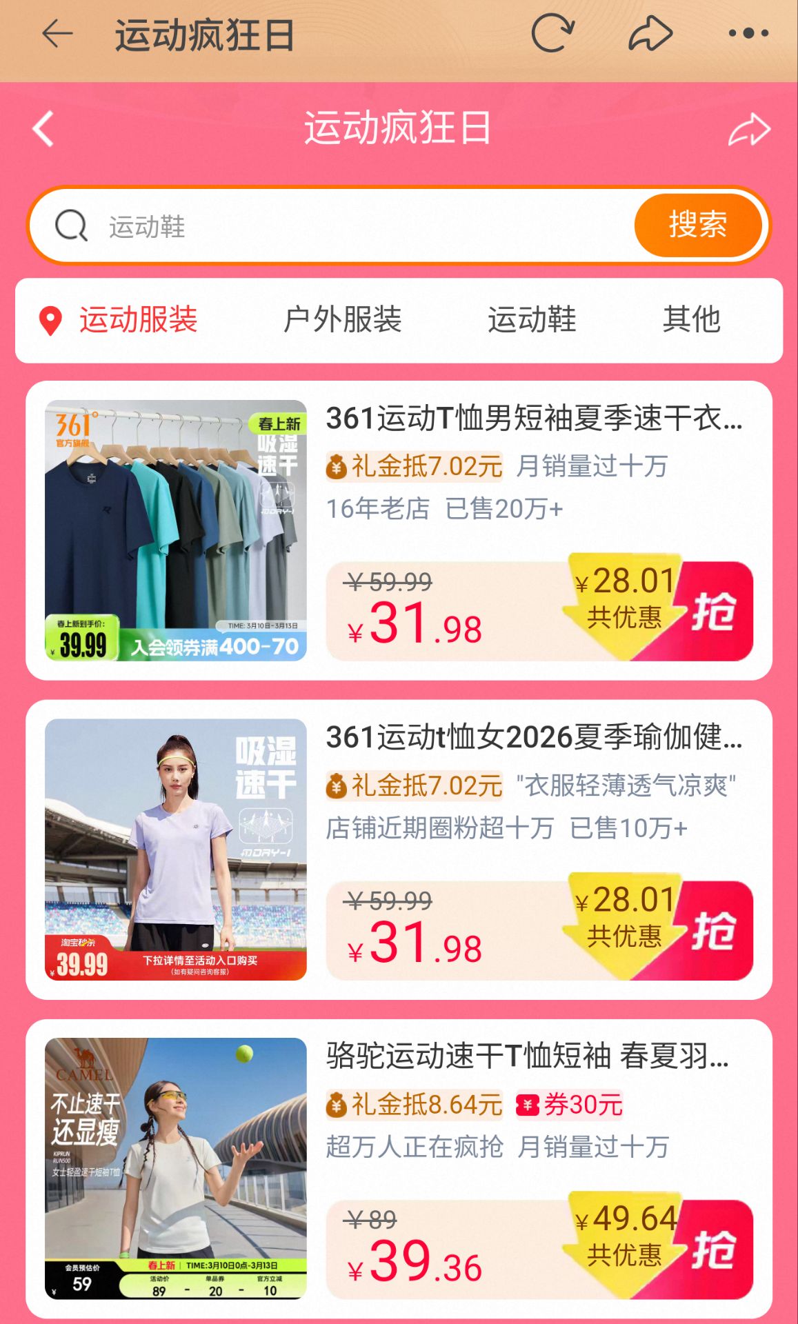 休闲运动服饰疯狂日会场