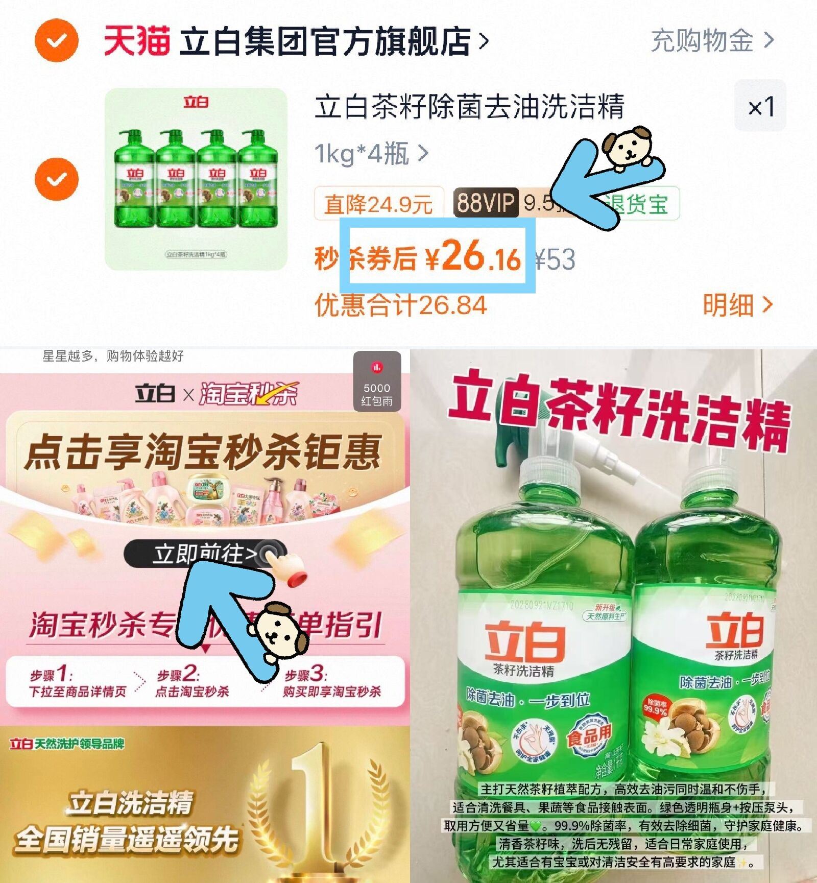 立白洗洁精神价4瓶才26元
