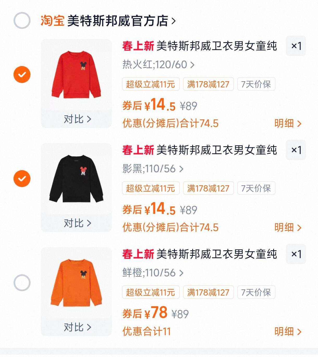 美特斯邦威儿童卫衣 任选件29元