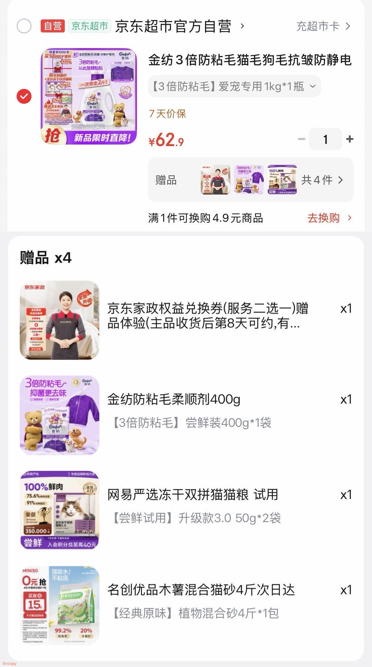 金纺衣物护理剂1KG 拍下62.9亓 赠家政2小时 赠金纺柔顺剂400g 网易严选双拼猫粮50g*2 混合猫砂4斤 好单发报员 2026年03月12日 14:38 0 举报 金纺衣物护理剂1KG拍下62.9亓 赠家政2小时赠金纺柔顺剂400g 网易严选双拼猫粮50g*2 混合猫砂4斤https://u.jd.com/NgplyQI 复制文案