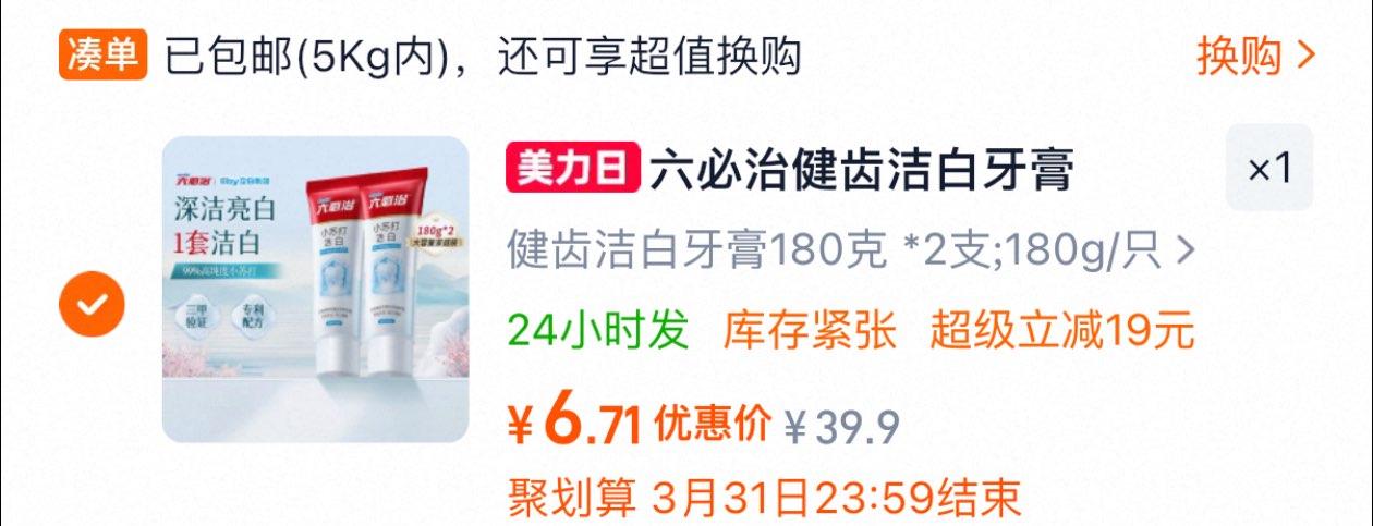 六必治小苏打牙膏亮白去黄180g*2支 金币页面加购叠2福袋凑后6.7 礼金页面显示反3虹包好单发报员2026年03月12日 14:490举报 六必治小苏打牙膏亮白去黄180g*2支金币页面加购叠2福袋凑后6.7礼金页面显示反3虹包https://m.tb.cn/h.iegc1Ea湊单https://m.tb.cn/h.ieFaBiD复制文案