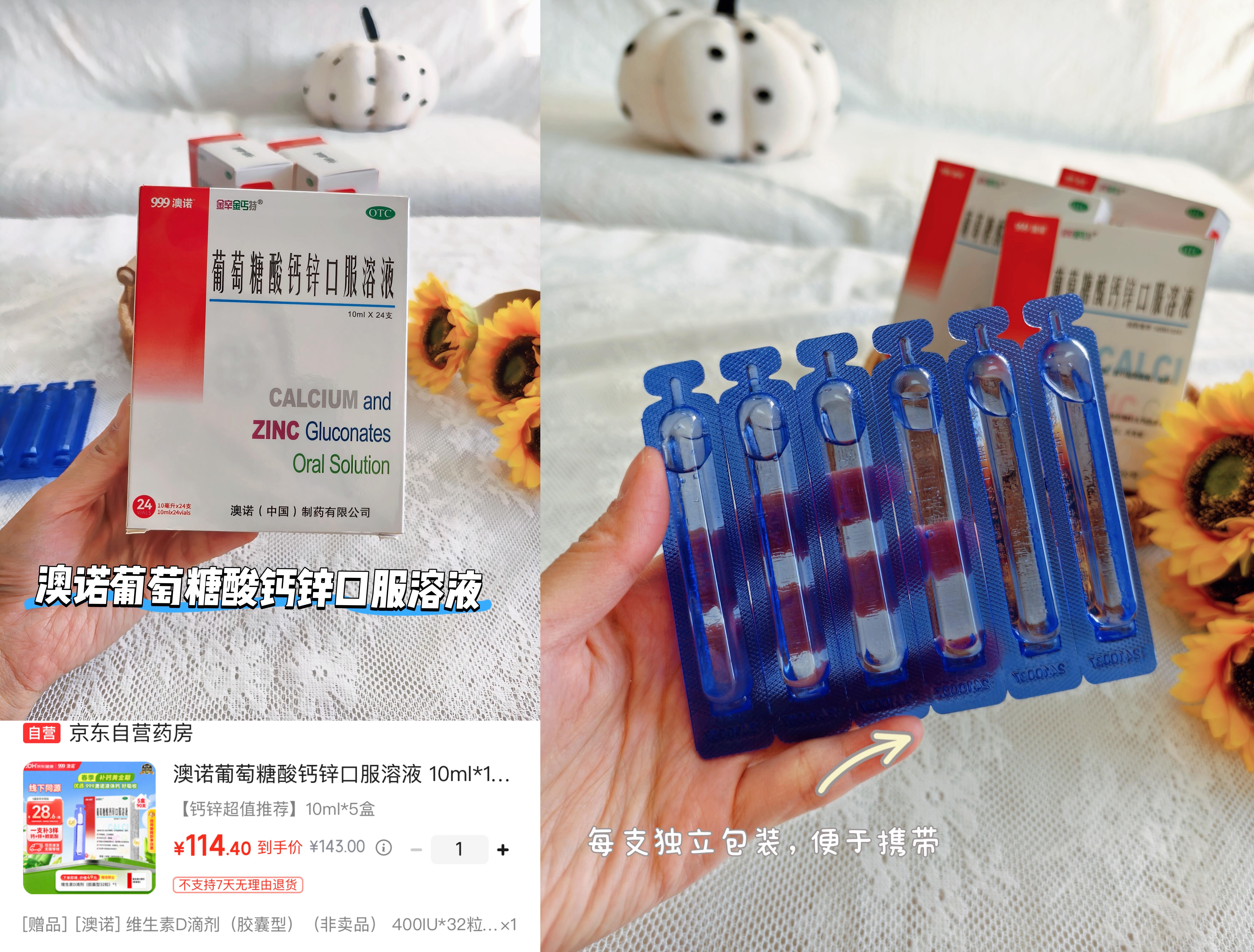 自营 澳诺 葡萄糖酸钙锌口服液10ml*18支 5盒装