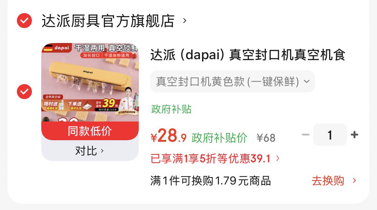 领5折券 达派真空封口机 28.9亓好单发报员2026年03月12日 17:320举报 领5折券https://u.jd.com/NaTYewx达派真空封口机 28.9亓https://u.jd.com/NDTnHhn复制文案