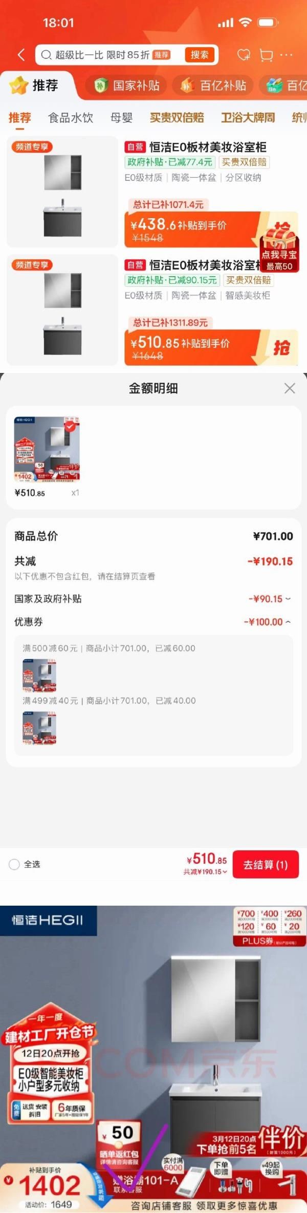 恒洁(HEGII)浴室柜E0级陶瓷一体盆小户型