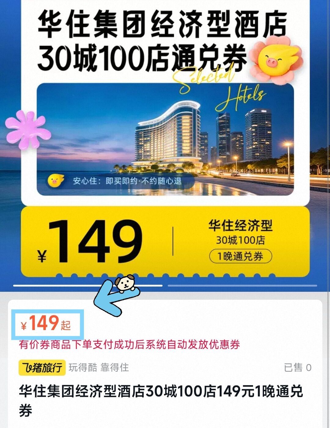 149元一晚30城100店通兑