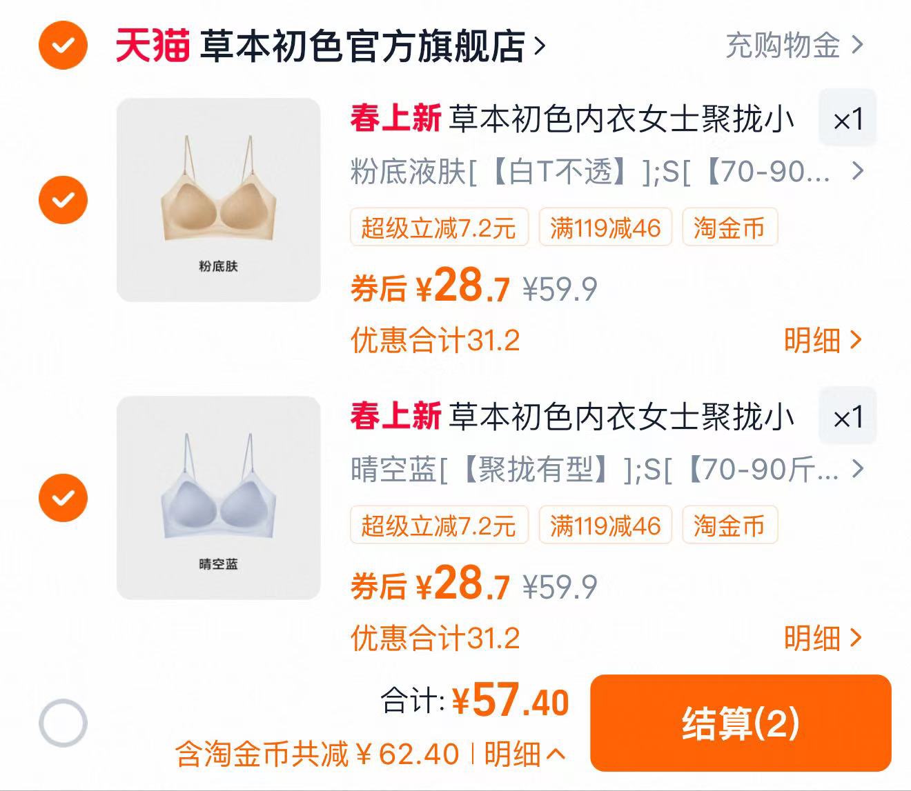 点右上角···再点击桃金币 找到商品加购2件 拍下57.4亓起 折28.7亓/件 草本初色官方旗舰店好单发报员2026年03月13日 16:200举报 点右上角···再点击桃金币找到商品加购2件 拍下57.4亓起折28.7亓/件 草本初色官方旗舰店草本初色无痕细肩带凉感文胸*2https://m.tb.cn/h.iVd6P3j复制文案